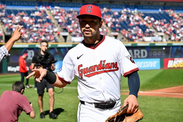 क्लीवलैंड, ओह – अक्टूबर 01: क्लीवलैंड गार्डियंस के स्टीवन क्वान #38 बुधवार, 1 अक्टूबर, 2025 को क्लीवलैंड, ओहियो में प्रोग्रेसिव फील्ड में डेट्रॉइट टाइगर्स और क्लीवलैंड गार्डियंस के बीच अमेरिकन लीग वाइल्ड कार्ड सीरीज़ के गेम टू के दौरान डगआउट में वापस चले गए। (फोटो ग्रेस हॉपेल/एमएलबी फोटो द्वारा गेटी इमेजेज के माध्यम से)