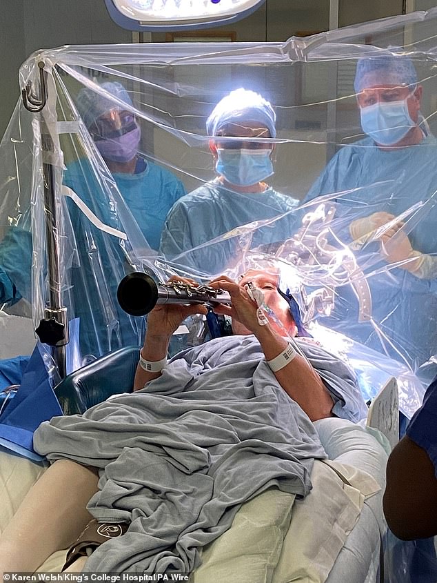 पार्किंसंस रोग से पीड़ित एक महिला ने मस्तिष्क की सर्जरी के दौरान अपनी शहनाई बजाई ताकि सर्जन उनके काम का तत्काल प्रभाव देख और सुन सकें।