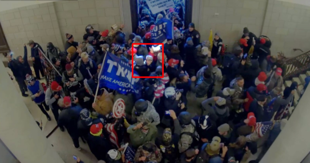 मोयनिहान के लिए अभियोजकों के सजा ज्ञापन में एक छवि उसे कैपिटल में प्रवेश करते हुए दिखाती है।