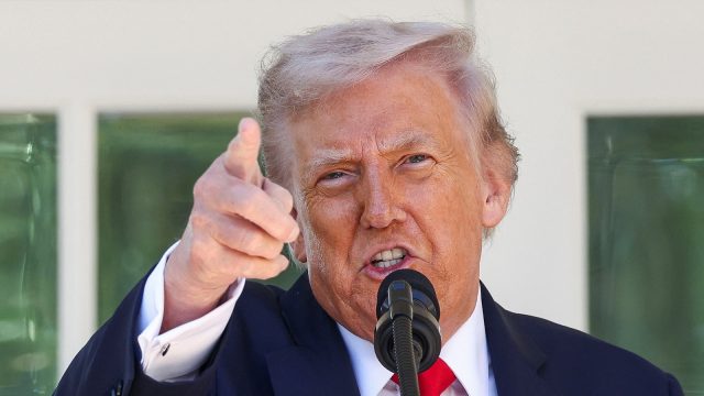 राष्ट्रपति डोनाल्ड ट्रम्प 21 अक्टूबर, 2025 को वाशिंगटन में व्हाइट हाउस में रोज़ गार्डन क्लब लंच की मेजबानी करते हुए बोलते हैं।