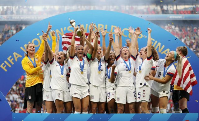 ल्योन, फ्रांस – 07 जुलाई: संयुक्त राज्य अमेरिका की एलेक्स मॉर्गन ने 2019 फीफा महिला विश्व कप फ्रांस फाइनल में अपनी टीम की जीत के बाद फीफा महिला विश्व कप ट्रॉफी जीती, 07 जुलाई, 2019 को ल्योन, फ्रांस में स्टेड डी ल्योन में संयुक्त राज्य अमेरिका और नीदरलैंड के बीच फाइनल मैच हुआ। (फोटो नाओमी बेकर द्वारा – फीफा/फीफा गेटी इमेजेज के माध्यम से)