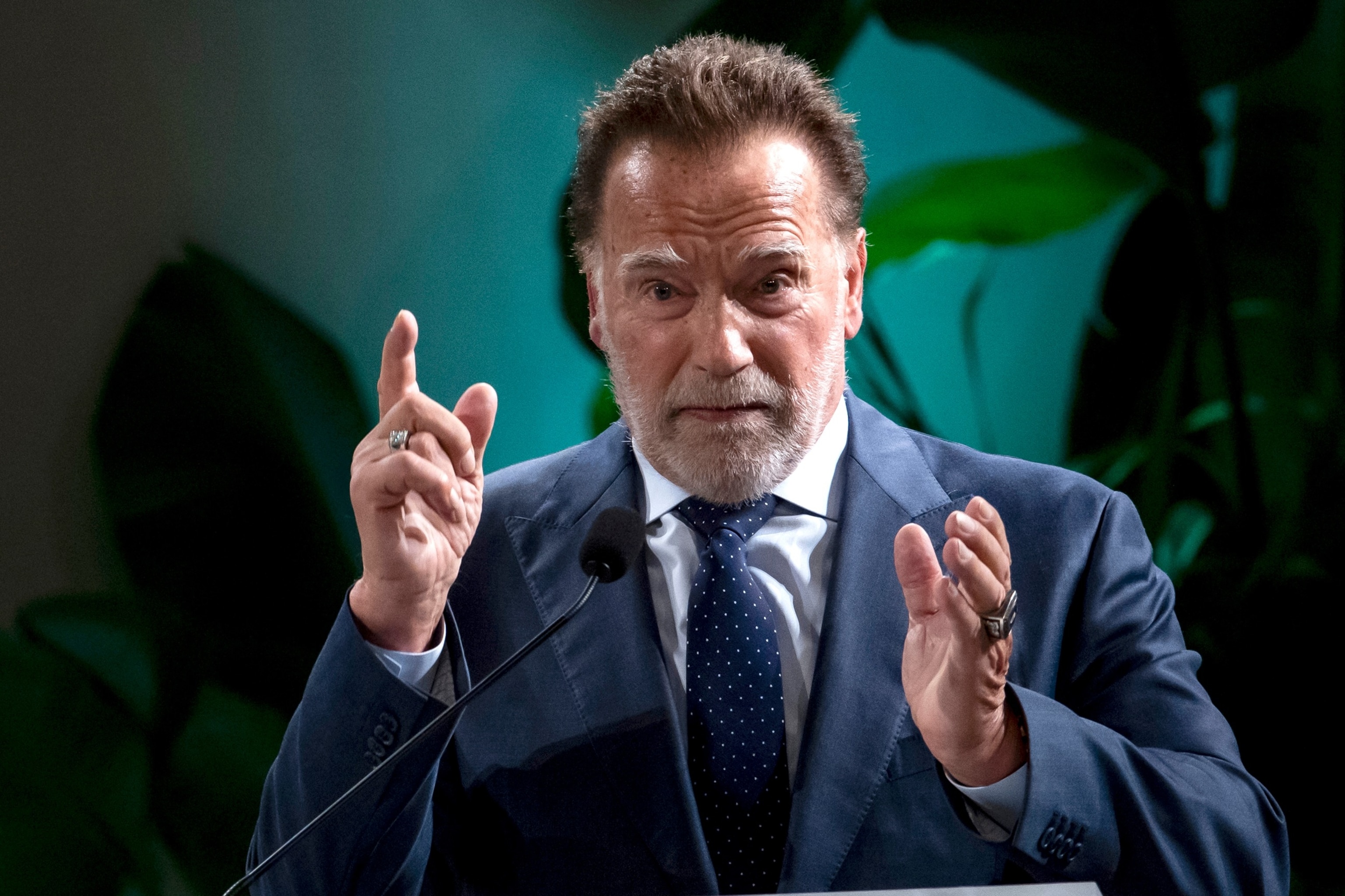अर्नोल्ड श्वार्ज़नेगर 1 अक्टूबर, 2025 को इटली के कैस्टेल गंडोल्फो में मारियापोलिस सेंटर में अंतर्राष्ट्रीय सम्मेलन “राइजिंग होप फॉर क्लाइमेट जस्टिस” के दौरान बोलते हैं।