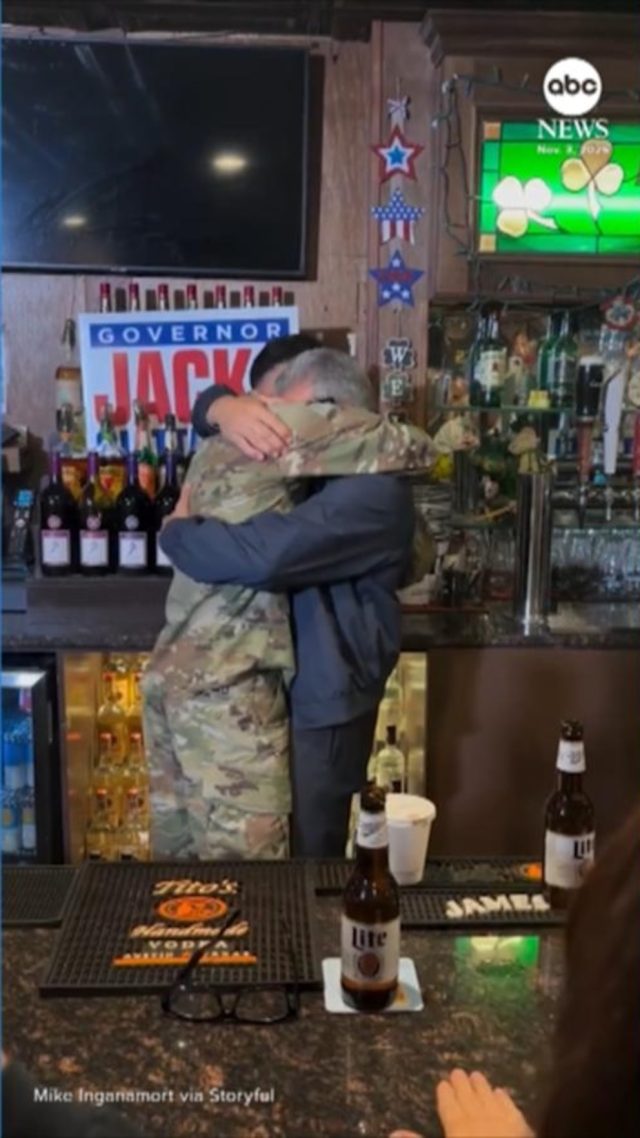 सोमवार को उत्तरी जर्सी के एक बार में प्रचार करते समय, न्यू जर्सी के रिपब्लिकन गवर्नर उम्मीदवार जैक सियाटारेली अपने बेटे की वापसी से आश्चर्यचकित रह गए, जो वर्तमान में कुवैत में तैनात है।