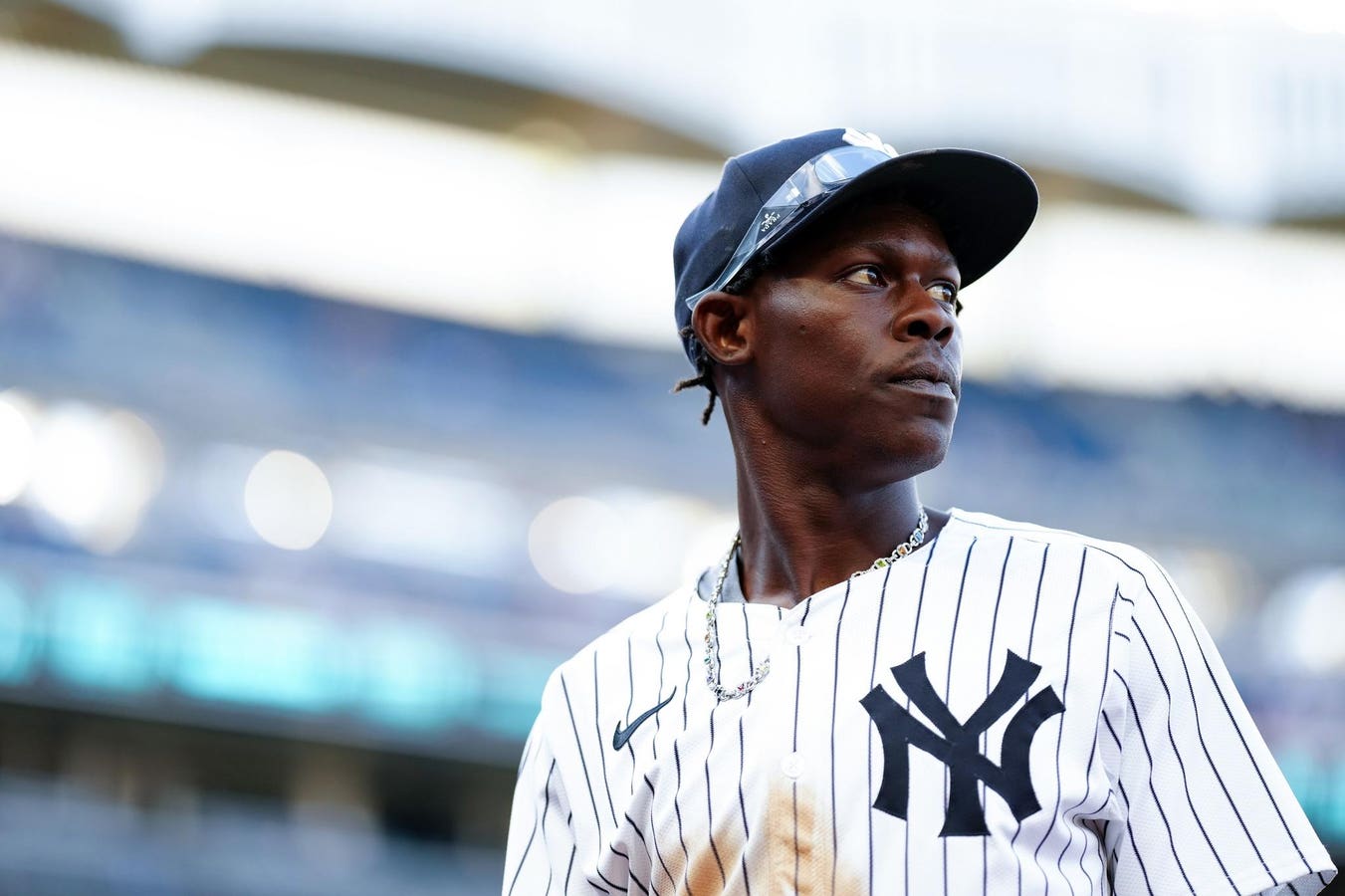 न्यूयॉर्क, एनवाई – 10 अगस्त: न्यूयॉर्क यांकीज़ के जैज़ चिशोल्म जूनियर #13 शनिवार, 10 अगस्त, 2024 को न्यूयॉर्क, न्यूयॉर्क में यांकी स्टेडियम में टेक्सास रेंजर्स और न्यूयॉर्क यांकीज़ के बीच खेल के दौरान दिखते हैं। (फोटो डैनियल शायरी/एमएलबी फोटो गेटी इमेजेज के माध्यम से)