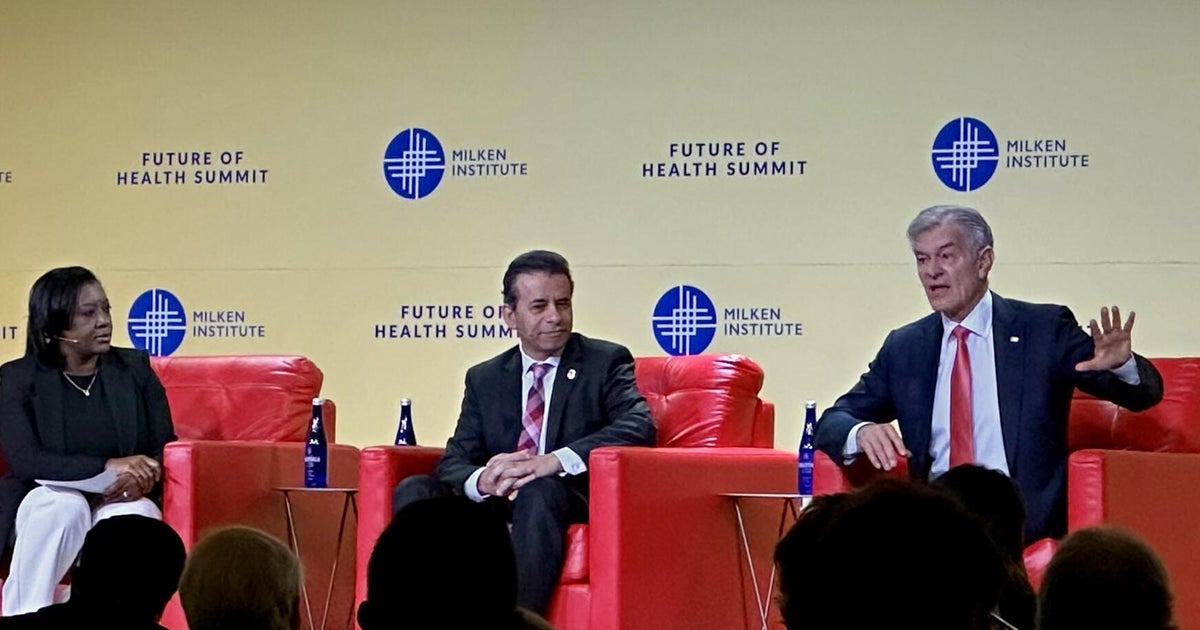 6 नवंबर, 2025 को मिल्केन इंस्टीट्यूट के एक कार्यक्रम में सेंटर फॉर मेडिकेयर एंड मेडिकेड सर्विसेज के प्रशासक मेहमत ओज़ (दाएं) एफडीए कमिश्नर मार्टी मैकरी (बीच में) और मिल्केन इंस्टीट्यूट हेल्थ के कार्यकारी उपाध्यक्ष एस्तेर क्रोफा के साथ।