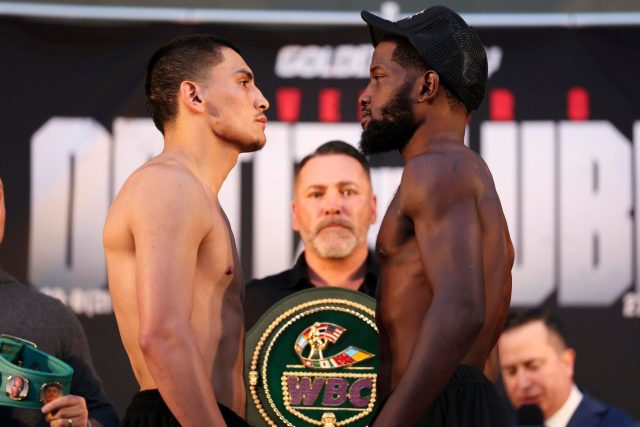 फोर्ट वर्थ, टेक्सास – नवंबर 07: वर्जिल ऑर्टिज़ जूनियर और एरिकसन लुबिन का 7 नवंबर, 2025 को फोर्ट वर्थ, टेक्सास में सनडांस स्क्वायर में स्पॉटलाइट में डब्ल्यूबीसी इंटर्न लड़ाई से पहले आमना-सामना हुआ। (फोटो क्रिस एस्क्वेडा/गोल्डन बॉय/गेटी इमेजेज द्वारा)